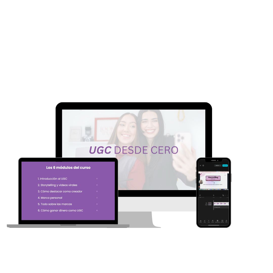 En este curso te enseña cómo convertirte en creadora UGC profesional, aunque estés empezando desde cero.